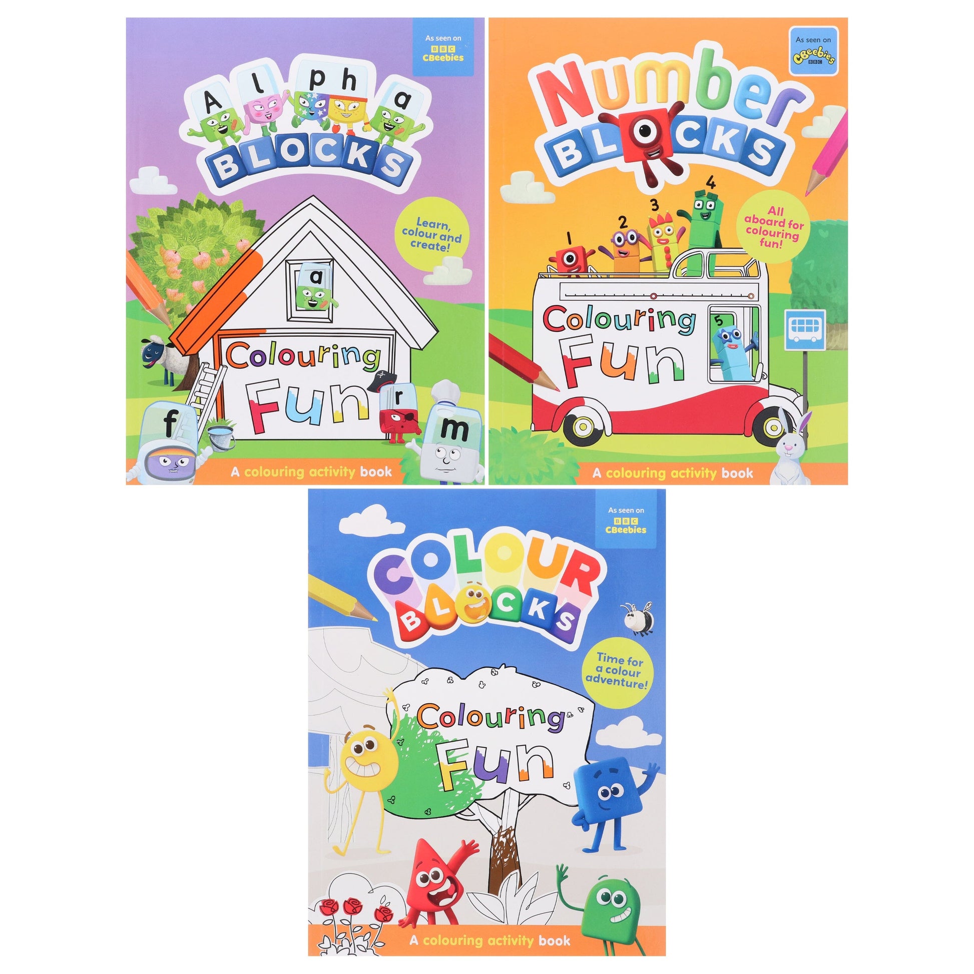 Numberblocks、Colourblocks 和 Alphablocks 趣味著色本 3 冊套裝 - 適合年齡 3-6 歲 - 平裝